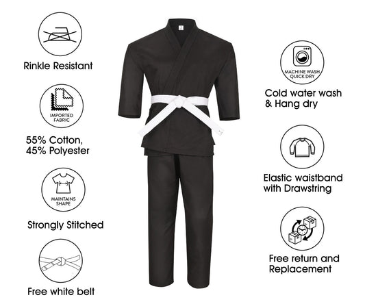 Karate Uniform 8.5oz Medium Weight For Kids & Adults Student Martial Arts Gi With Free White Belt